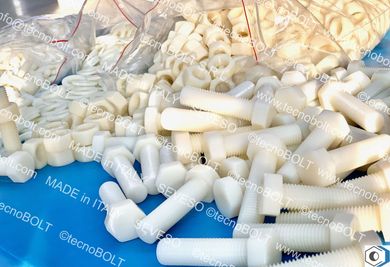 Viti Dadi Rondelle in Nylon stampati anche in resina Acetalica Bianca.